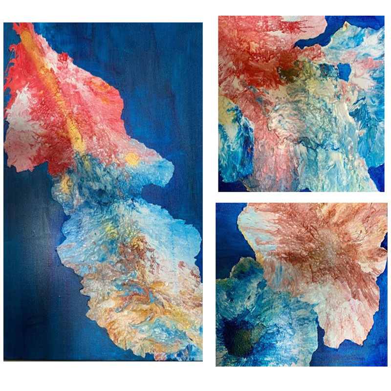 दूसरी फ्रेम में आकर्षण का भावनाओं के साथ प्रस्तुतिकरण है। मिलन की इस अवस्था में नव जीवन की उपस्थिति अधिक करीब आ जाती हैं। और तीसरी फ्रेम इंगित करती हैं कि प्रेम भावना से फूटा अंकुर केन्द्र बन जाता है। मेरी यह रचना एक संपूर्ण जीवन की कहानी है ।प्रेम की कहानी है ईश्वरीय रचना का सांकेतिक प्रस्तुतिकरण है।